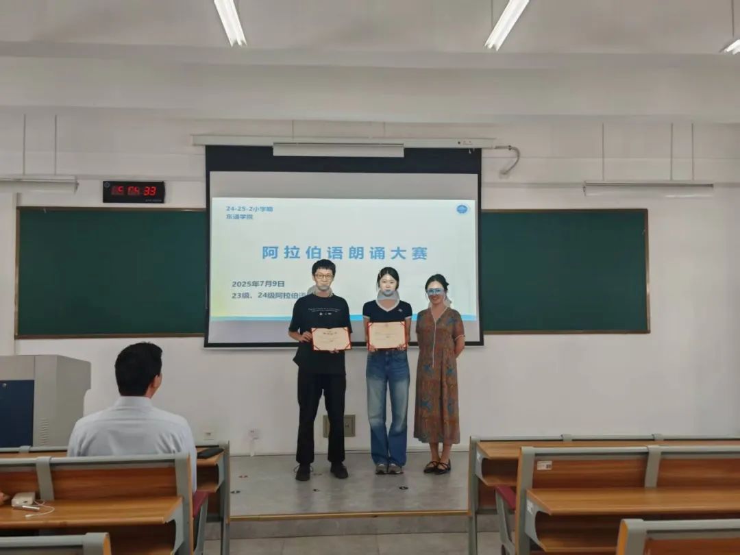 7月9日,阿语系顺利举办阿拉伯语朗诵大赛。本次比赛邀请到阿语系修蕊、叙飞、单遥、刘奕辰等教师担任评委。