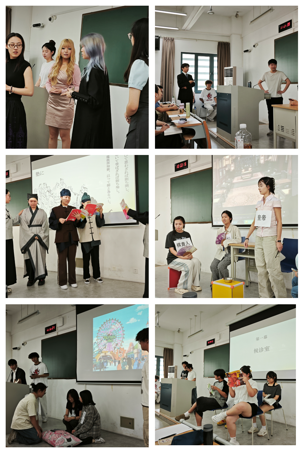 同日,2025年度日剧PLAY大赛在融D202热烈开赛,2023级全体员工组成15支队伍参赛,日语系教师担任评委。