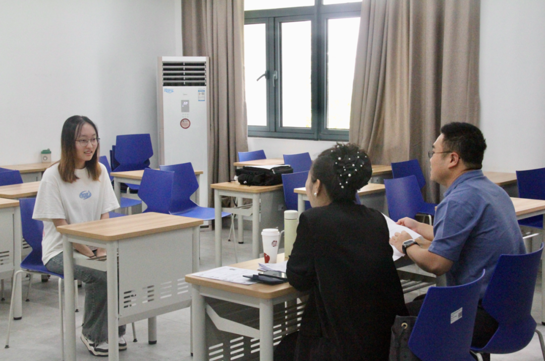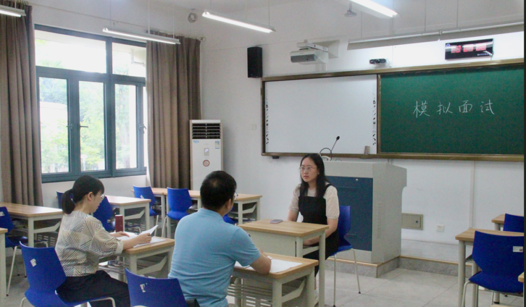 当日,2022级日语专业员工参与的模拟面试在融C各教室有序开展,日语系全体教师化身面试官,为同学们打造沉浸式求职场景。各教室严格按照真实面试环境布置,从桌椅摆放至流程设置均贴近企业招聘标准。
