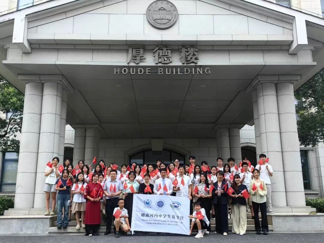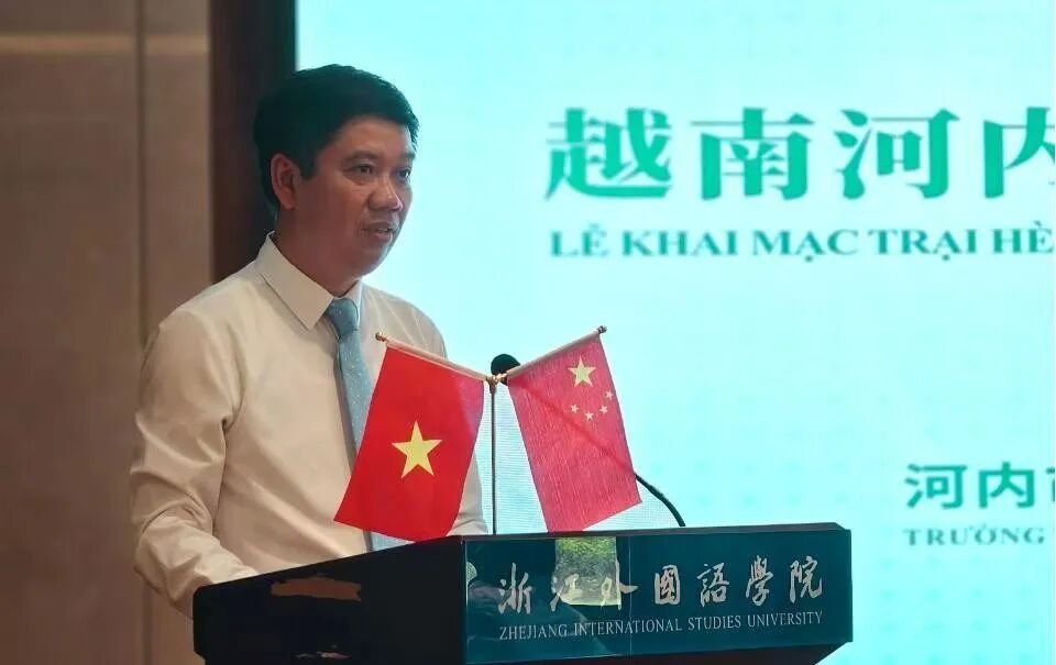 7月14日,2025年越南河内中员工夏令营开营仪式暨中越员工交流会在厚德楼102室隆重举行。河内市南慈廉郡阮攸初中副董事长Nguyen Hoang Huyen(阮黄轩)、带队教师Dao Thi Huyen(陶氏玄)、Vu Trang Nhung(武妆绒)、Bui Thi Trang(裴氏庄),公司国际处处长陶国霞,公司党委书记夏颐、党委副书记宋洋,越南语专业学科带头人余富兆等出席仪式。来自河内市南慈廉郡阮攸初中、牛顿中学的27名中员工,以及公司越南语专业员工代表等共同参与仪式。开营仪式由越南语系外教阮氏云琼主持。