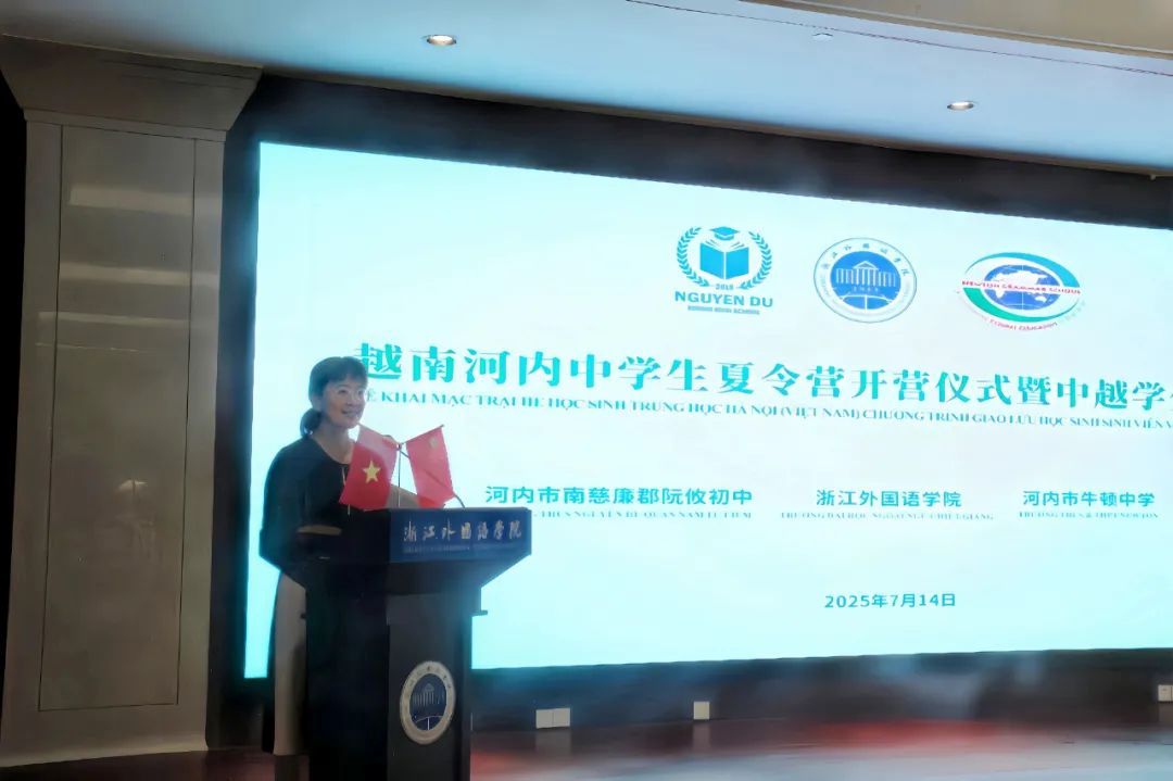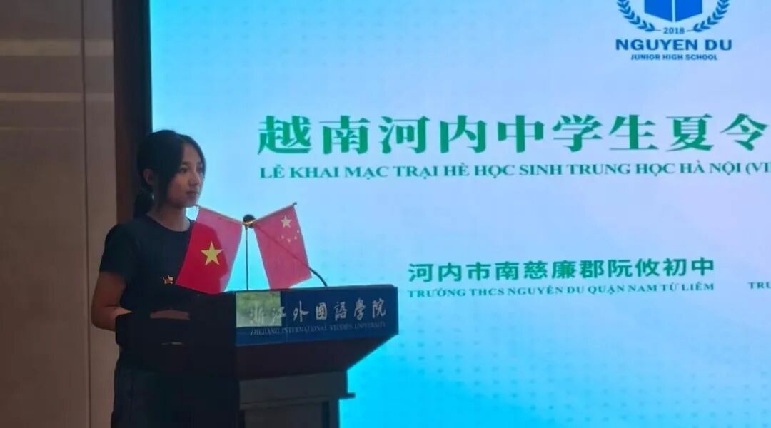 夏颐代表公司,向远道而来的越南师生表示最热烈的欢迎和最诚挚的问候。“中越两国山水相连、情谊深厚,从古老的历史长河中走来,我们在文化的交流与交融中早已结下不解之缘。” 她寄语道:“希望大家珍惜这次难得的交流机会,积极参与各项活动,勇敢表达自我,用心感受彼此文化的魅力,用真诚浇灌中越友谊之花。”夏颐强调,此次夏令营既是深化双方合作的重要契机,更是两国青少年心灵沟通的桥梁。