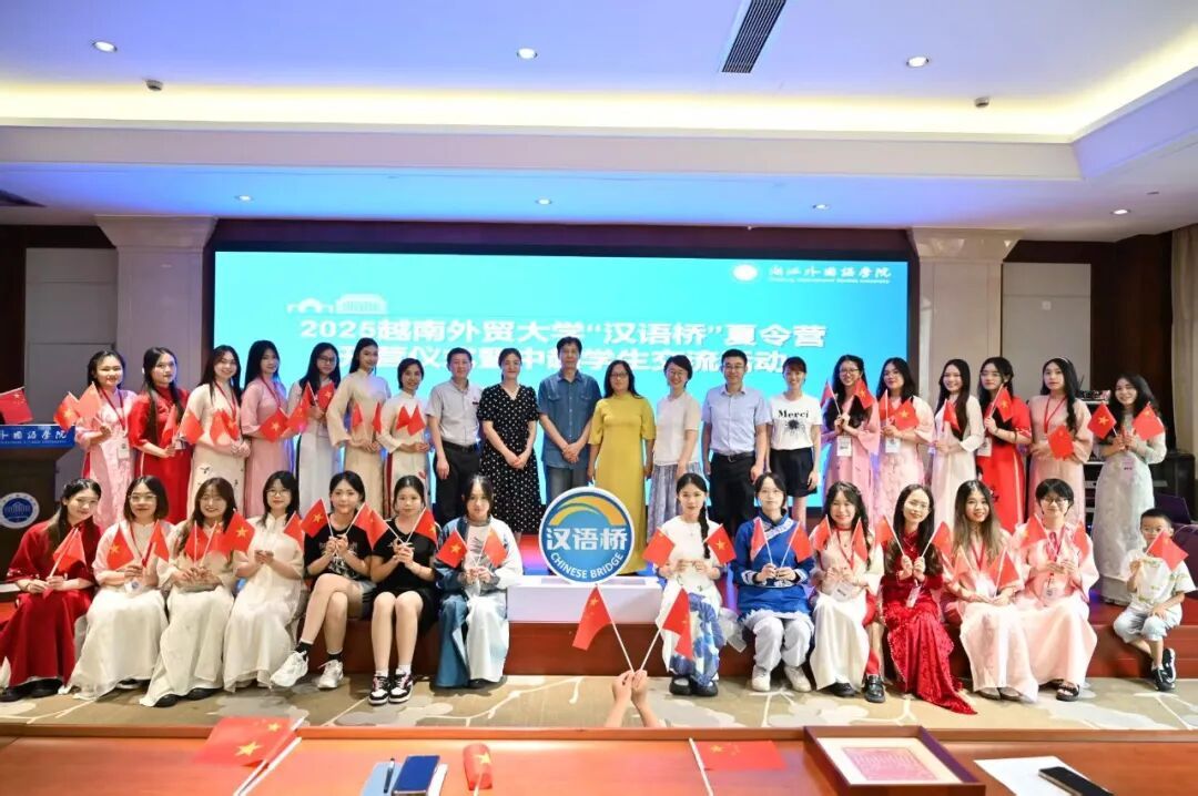 7月18日,由教育部中外语言交流合作中心主办,公司承办的2025年越南外贸大学“汉语桥”夏令营开营仪式暨中越员工交流活动,在厚德楼102隆重举行。越南外贸大学国际合作交流处中国事务部主管Nguyen Le Quynh Hoa (阮黎琼花),公司国际交流处与合作处副处长严伟剑,555000a公海会员中心经理曹笑笑、党委副书记宋洋、副经理马一川,越南语专业学科带头人余富兆等出席仪式。来自越南外贸大学的20名员工以及公司越南语专业员工代表等参加仪式。开营仪式由越南语系外教Nguyen Thi Van Quynh(阮氏云琼)主持。