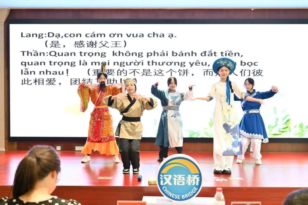 仪式后,中越学子轮番登场,用精彩的表演拉开了一场别开生面的文化对话序幕。公司越南语系员工带来情景剧《越南粽子和糍粑的起源》,诙谐幽默的台词和生动活泼的表演引得全场笑声不断,中越学子在会心的欢笑中拉近了距离。