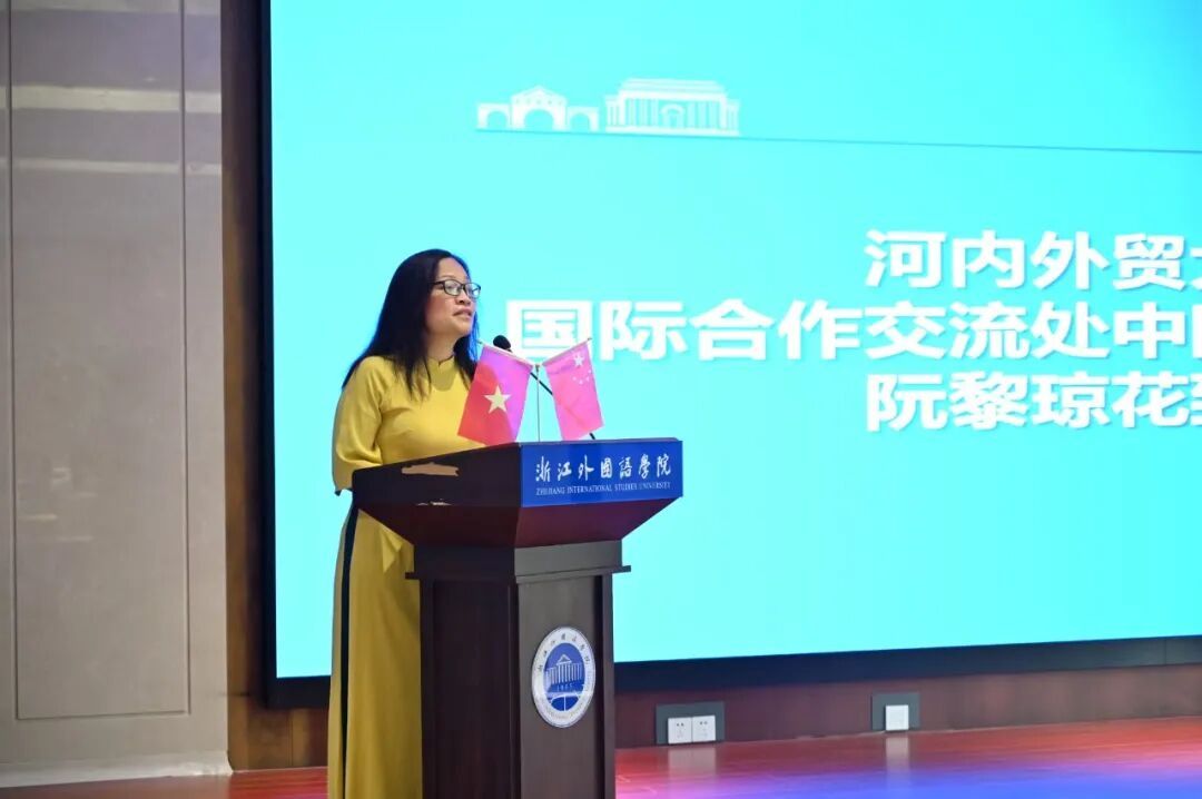 Nguyen Le Quynh Hoa(阮黎琼花)在致辞中动情地说:“衷心感谢贵校为本次‘汉语桥’夏令营倾注的心血与热情周到的安排,这份情谊让我们倍感温暖。”她深情回顾:“中越两国友谊源远流长,今年恰逢中越两国建交75周年,此次‘汉语桥’夏令营将为两国在教育交流领域搭建一座新桥梁。”面向越南学子,她殷切寄语:“希望你们以开放的心态拥抱这次文化探索之旅,在汉语课堂勤学善问,在文化体验中勇敢尝试,用心感受中华文明的深厚底蕴。”