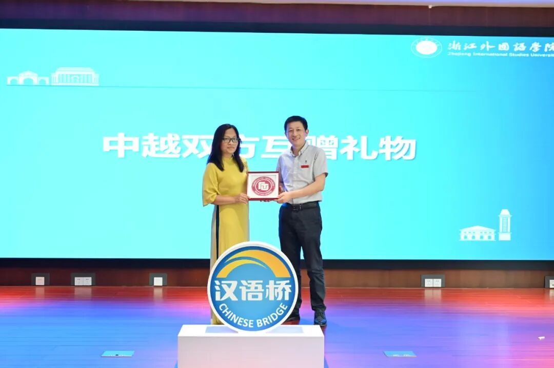 随后,严伟剑与Nguyen Le Quynh Hoa(阮黎琼花)代表双方学校互赠礼物,共同祝愿中越学子能通过本次“汉语桥”夏令营项目,书写一段跨越国界的青春故事。