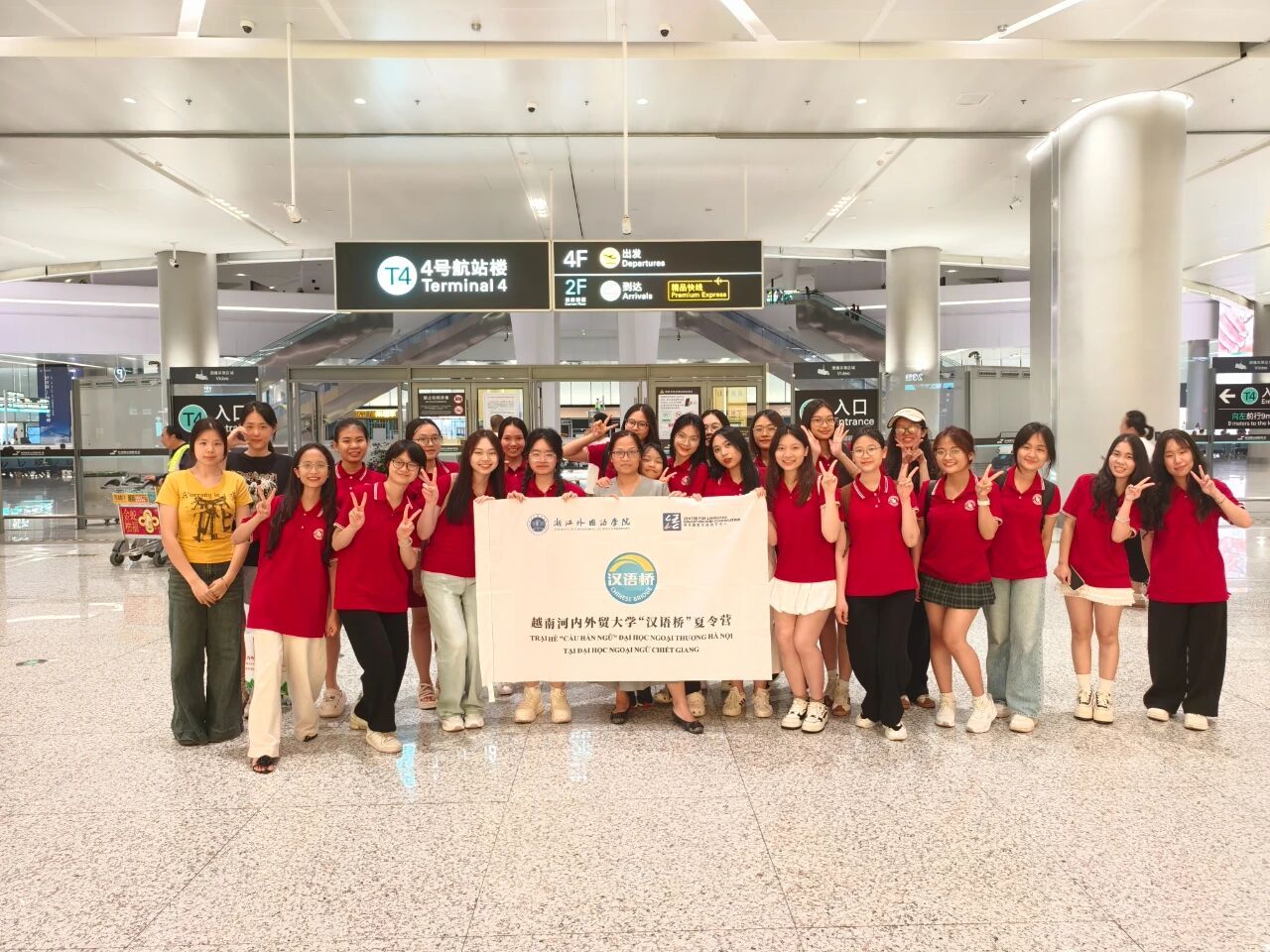 杭州的夏夜闷热未散,萧山国际机场的抵达大厅已渐归寂静。7月17日23:53,电子屏上越南外贸大学所乘坐的航班信息终于跳转为“到达”,在看到他们身穿校服的一抹抹红色出现时,555000a公海会员中心的员工立刻举起印有中越双语“欢迎”的接机牌,兴奋地摇晃着。推着行李车的越南师生们,有人睡眼惺忪,有人兴奋地东张西望。坐上大巴车后,带队老师Nguyen Le Quynh Hoa(阮黎琼花)用越南语问同学们:“谁是第一次到外国呀?”车内齐刷刷举起快二十只手。“哇,连空气都是陌生的味道!”坐在后排的Van Thi Thuan(文氏纯)小声感叹,车窗印出她亮闪闪的眼睛。车外,杭州的霓虹掠过玻璃,将这群初次踏足中国的年轻人脸庞染成斑斓的色彩。