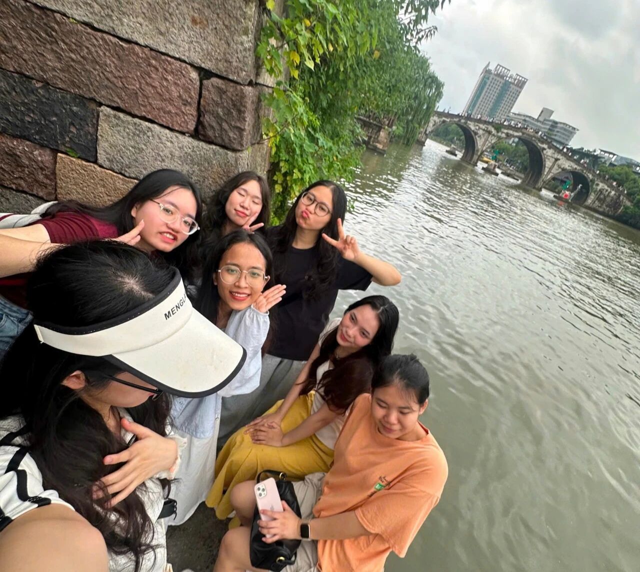 7月26日,京杭大运河畔,Nguyen Huyen Trang(阮玄庄)指着河面货船惊呼:“和湄公河上的船完全不一样!”在桥西历史街区,Nguyen Thi Phuong Thanh(阮氏芳清)对着清代粮仓的木质滑槽笑称:“古人竟是用‘溜滑梯’运粮食!”中国伞博物馆里,Nguyen Thuy Tien(阮水仙)在虚拟伞面上画下越南国花莲花,中国员工王文婧添上墨竹,跨国合绘的伞面绽放出友谊之花。