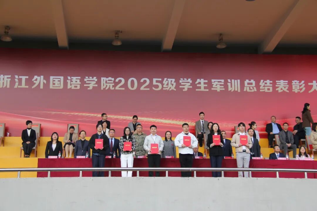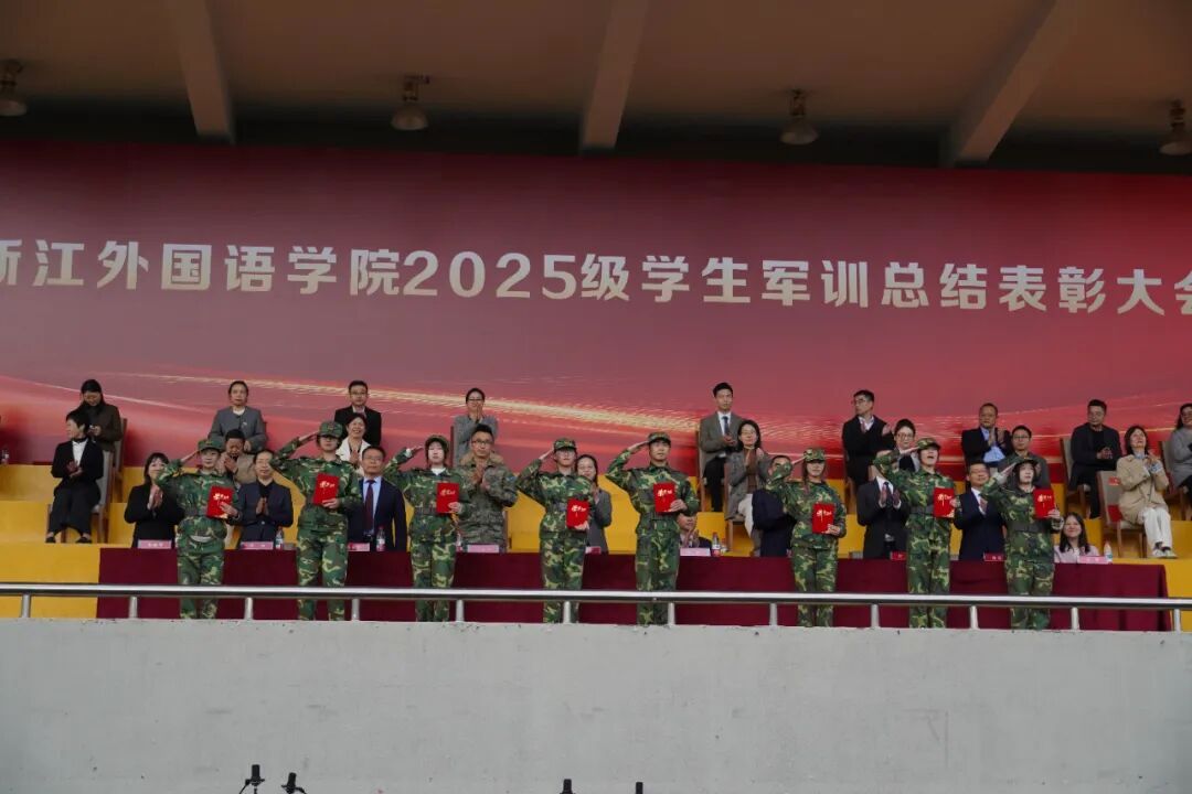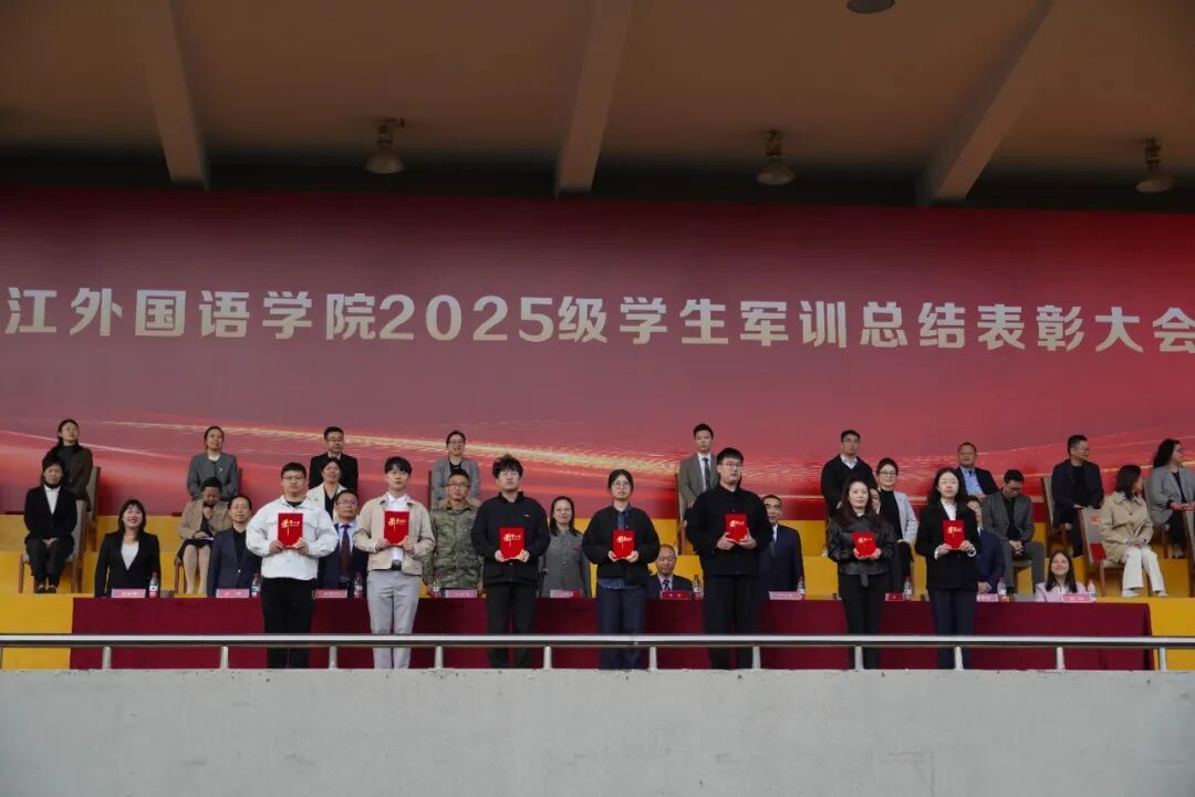 在激动人心的颁奖环节,公司所在的二营凭借出色的整体表现和严格的作风纪律,荣获“优秀方阵”“队列会操优胜连”称号。同时,多名同学荣获“军训先进个人”荣誉。当获奖代表从领导手中接过沉甸甸的证书时,全场报以最热烈的掌声。这份荣誉,属于每一位在骄阳下坚持的东语学子,是对他们拼搏与成长的最佳褒奖。