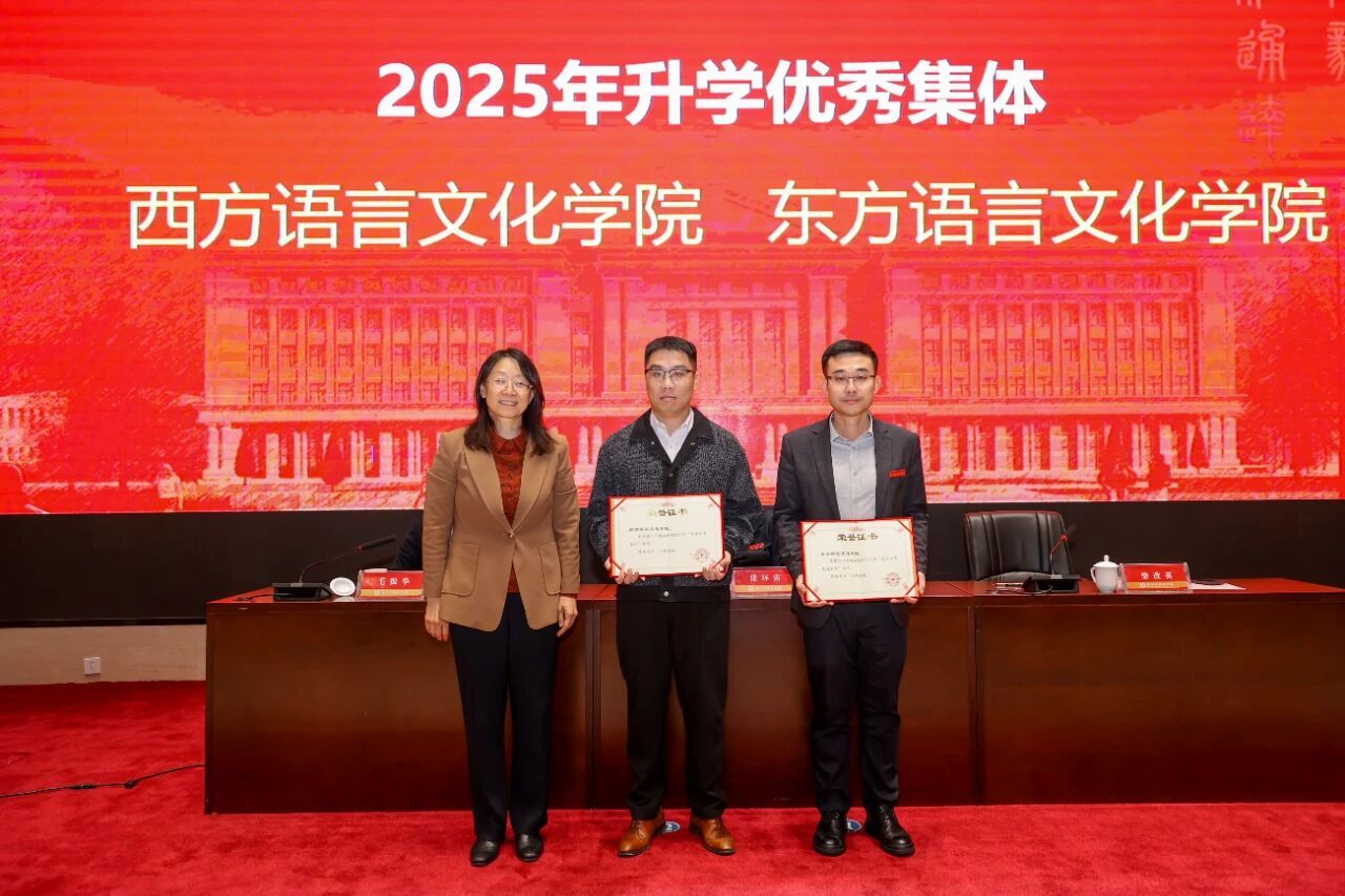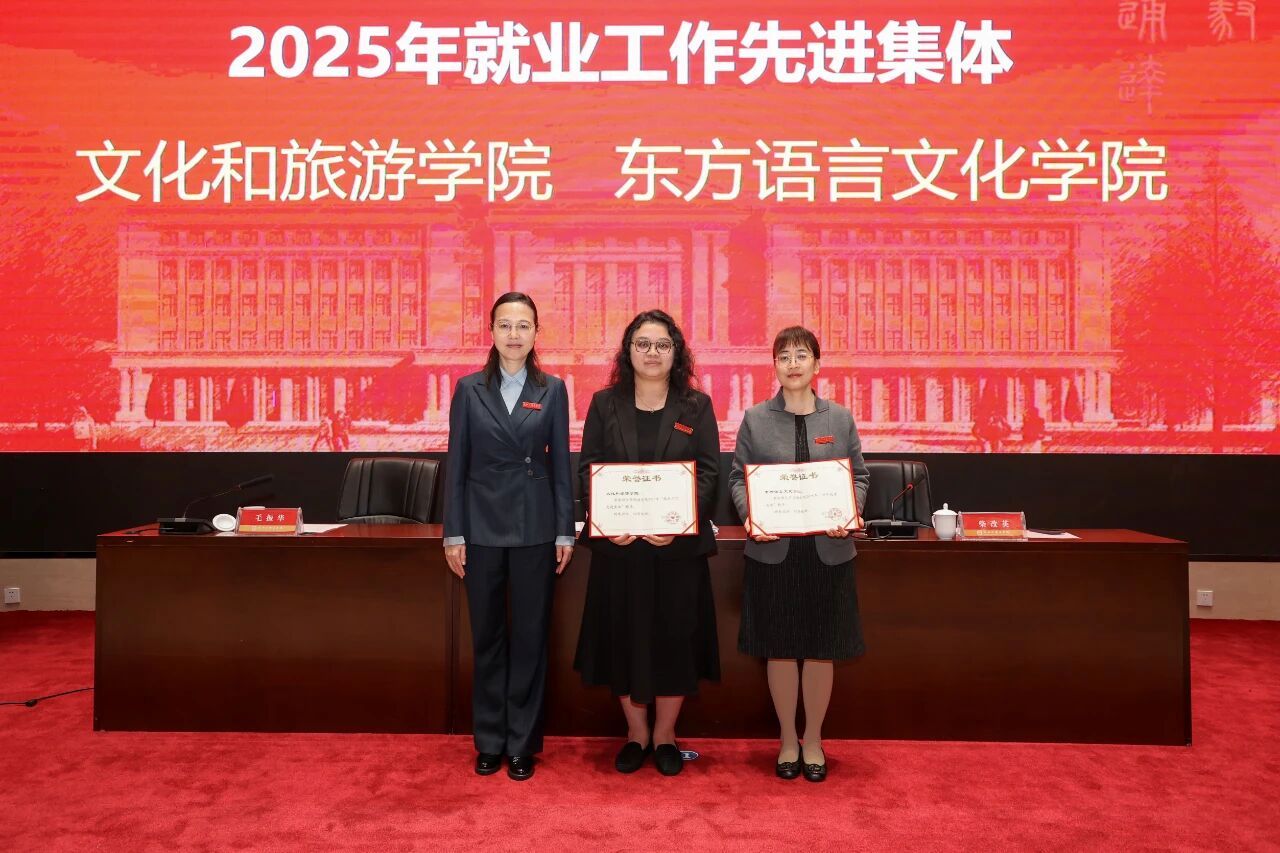 11月6日,学校在同文堂举行2026届毕业生就业工作会议。大会对2025年“就业工作先进集体”“升学优秀集体”“就业工作先进个人”进行表彰。公司分别荣获学校2025年“就业工作先进集体”和“升学优秀集体”称号,辅导员蔡胜、日语系教师寿舒舒荣获学校2025年“就业工作先进个人”称号。学校领导为获得殊荣的公司和个人颁发荣誉证书。