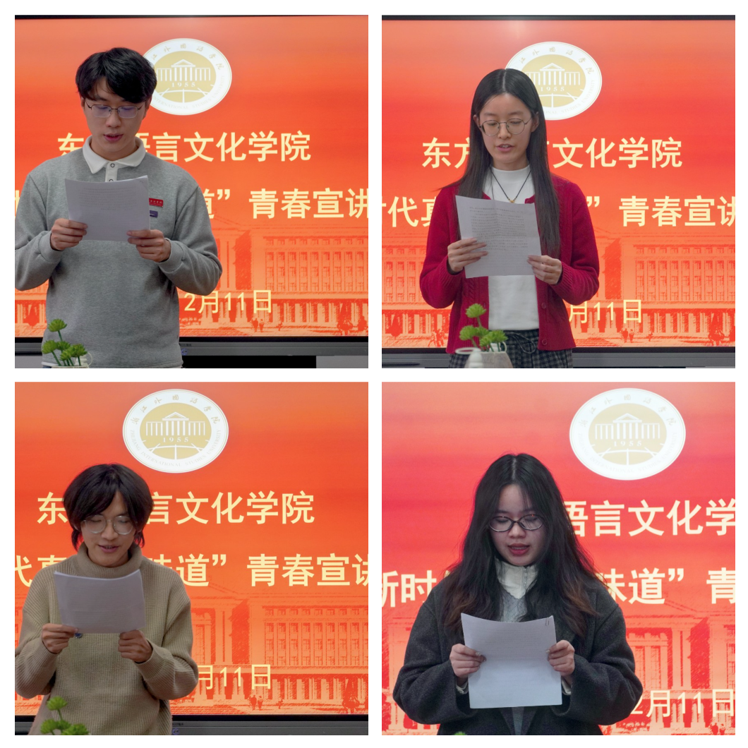 12月11日,公司在融院C304举办“新时代真理的味道”青春宣讲活动。学校“青学”宣讲团四位成员高卓、童雅茹、张宸嘉、姚晨雨分别进行主题宣讲。公司党委书记夏颐,党委副书记宋洋,辅导员蔡胜、高卓以及本科和研究生代表共30余名师生参加宣讲活动。