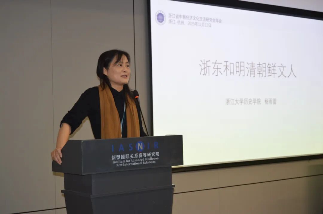 浙江大学历史系教授杨雨蕾以《浙东和明清朝鲜文人》为题,从历史文献考证与文人交往实例切入,细致梳理了浙江地区与朝鲜半岛在明清时期的文化交流脉络,生动勾勒出两地源远流长的文脉联系与精神共鸣。