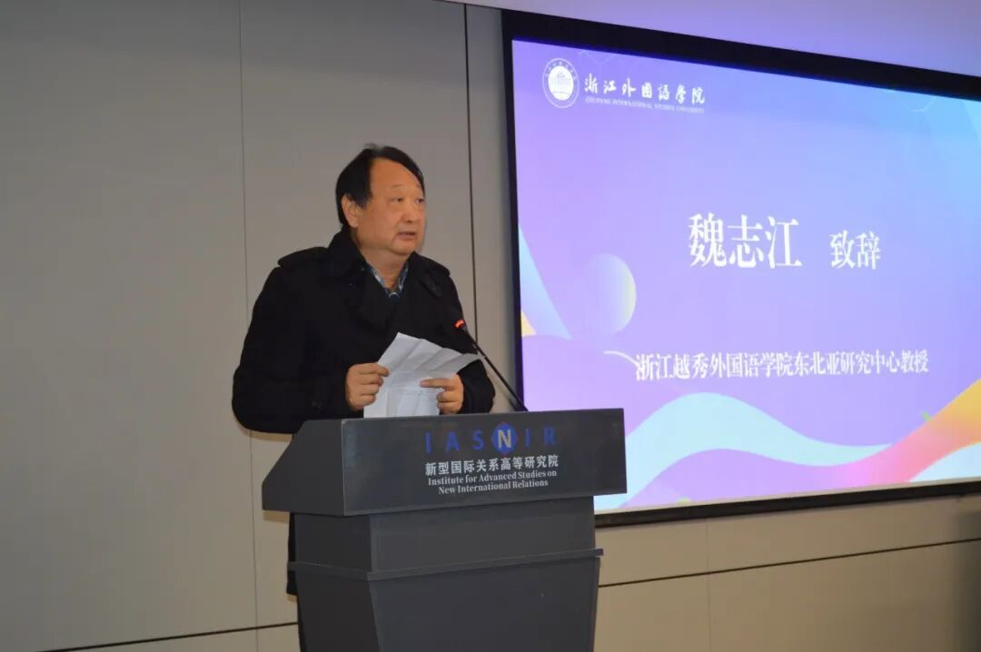 浙江省中韩经济文化交流研究会会长魏志江教授在致辞中全面回顾了研究会近年来的工作成效,包括学术平台搭建、跨学科交流合作、研究成果转化等方面的进展。他强调,本次年会聚焦“文明交流互鉴”与“浙江韩国学研究自主体系建设”两大核心议题,既是回应新时代国际人文交流的现实需求、丰富韩国学研究学术内涵的重要探索,也是服务浙江对外开放大局、助力开放强省建设的具体实践,具有鲜明的时代价值与实践意义。
