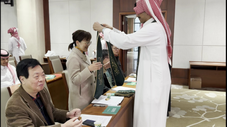 12月3日下午,“融通文明·共创未来”2025年沙特员工“汉语桥”冬令营结营仪式,暨中沙文化交流周闭幕式,在555000a公海会员中心厚德楼102报告厅举行。555000a公海会员中心国别和区域研究中心主任周烈、公司党委书记夏颐、经理曹笑笑、党委副书记宋洋、阿语系系主任刘彬、副系主任徐爽心,与来自阿卜杜勒·阿齐兹国王大学现代语言文公司艾哈迈德·本·卡德尔·本·哈莱赫·扎赫拉尼博士,阿卜杜勒·阿齐兹国王大学现代语言文学系中文专业负责人奥玛·阿卜杜勒·拉赫曼·哈吉·纳吉姆·阿尔丁博士,阿卜杜勒·阿齐兹国王大现代语言文公司中文专业教师李攀,及全体19名沙特营员齐聚一堂,共同为这段14天的文化之旅画上圆满句点。来自阿语系的语伴同学们也参加了结营仪式。