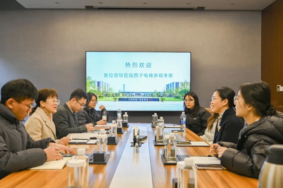 随后,公司师生前往西子电梯科技有限公司。公司人力资源部部长丁亚琴等热情接待了公司一行,并带领参观了公司园区、生产车间与展厅。座谈环节中,丁亚琴全面介绍了公司的全球市场分布、核心岗位需求、员工培训体系及薪酬福利保障等情况。夏颐则详细介绍了学校及公司的办学特色,重点阐述了外语类人才培养的创新做法,同时关切询问了公司2025届在职毕业生的职业发展状况与2026届实习毕业生的工作表现,并就进一步深化校企合作、拓宽合作领域等事宜与企业方深入交换了意见。