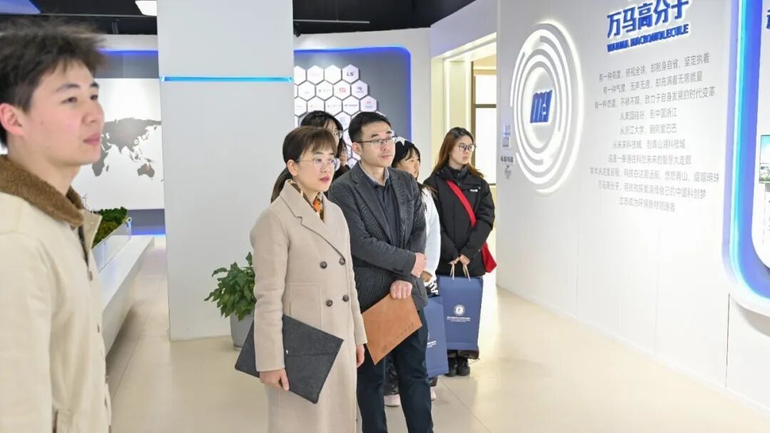 在万马高分子材料集团有限公司,师生一行先后参观了公司展厅、生产车间及实验中心。公司人力资源部董丹、吴文轩详细介绍了企业主要产品体系、市场布局、岗位招聘需求及员工培训体系等核心情况,并与公司师生展开座谈交流。